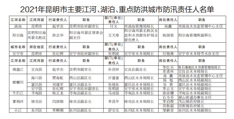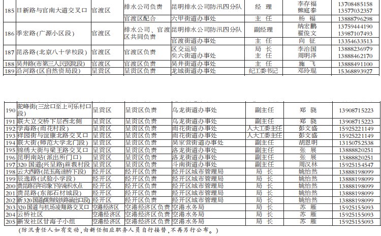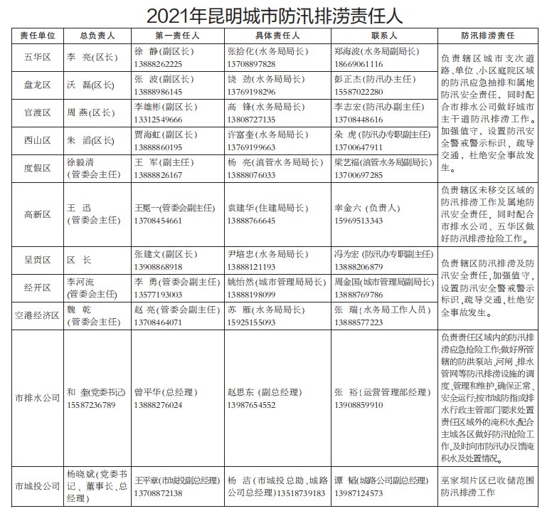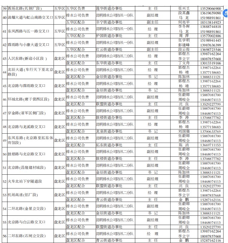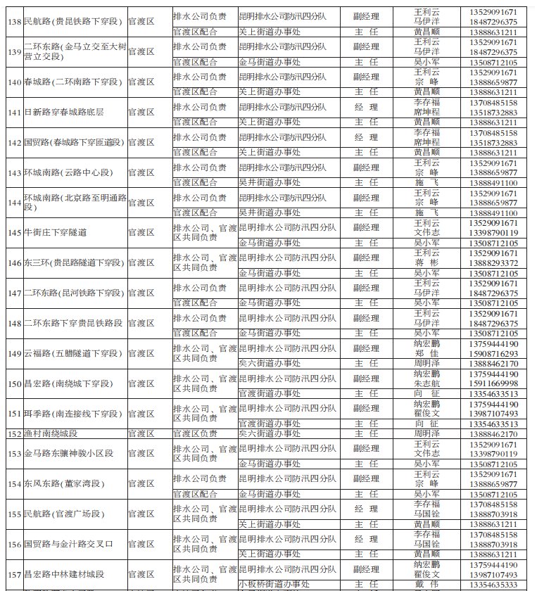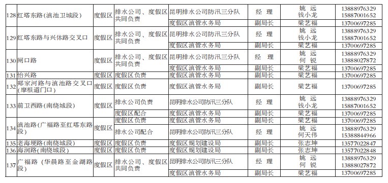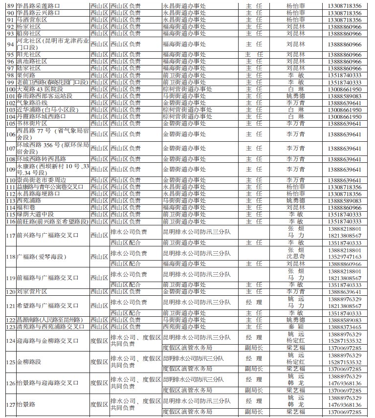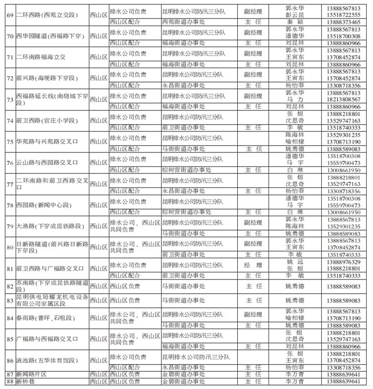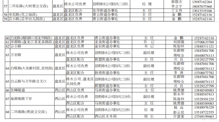 2021年昆明市防汛責任人公布/積水路段
