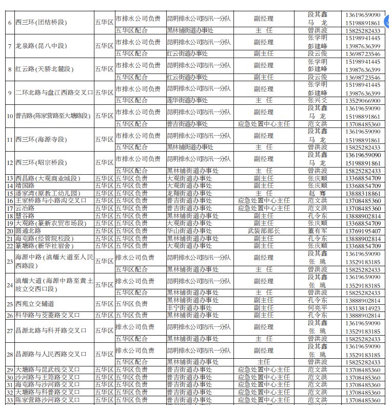 昆明市有多個淹水點(附負責人電話/名單)