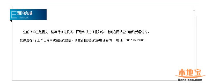 提交后辦事民警會(huì)以手機(jī)信息方式通去辦理窗口辦理;