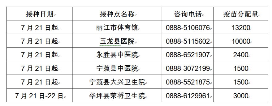 麗江未成年人新冠疫苗接種公告