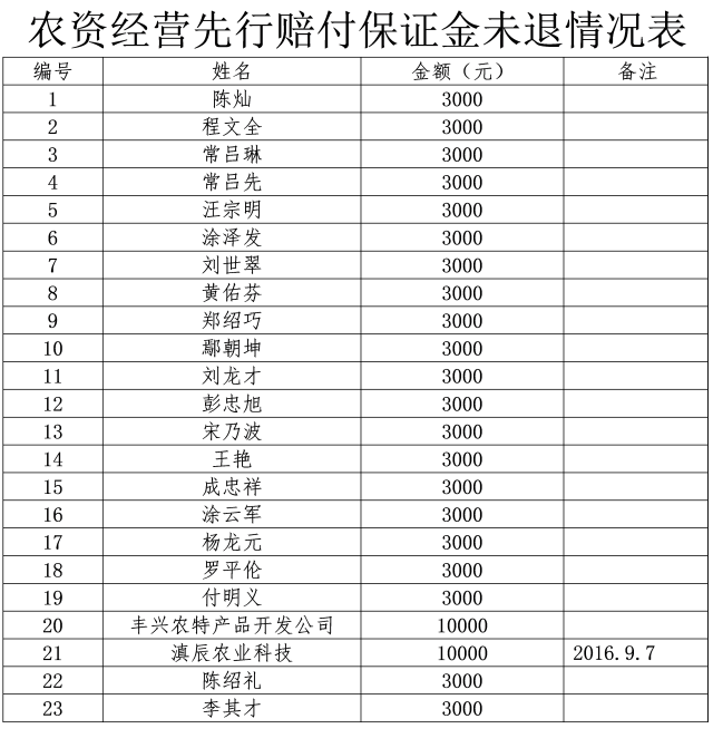 自2016年6月以來,我局對原鎮(zhèn)雄縣工商行政管理局收取的農(nóng)資先行賠付保證金、原鎮(zhèn)雄縣食品藥品監(jiān)督管理局收取的藥品經(jīng)營質(zhì)量保證金進(jìn)行清理退還。但截止目前,仍有一部分經(jīng)營業(yè)主未到我局辦理清退手續(xù),請還未辦理清退手續(xù)的經(jīng)營業(yè)主自本公告之日起60日之內(nèi)到我局財(cái)務(wù)室辦理保證金退還業(yè)務(wù),逾期我局將按相關(guān)規(guī)定將款項(xiàng)上交財(cái)政。
