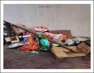 1、門前“三包區(qū)域”執(zhí)行不到位,樓梯口處紙箱、米袋等垃圾亂堆亂放。
