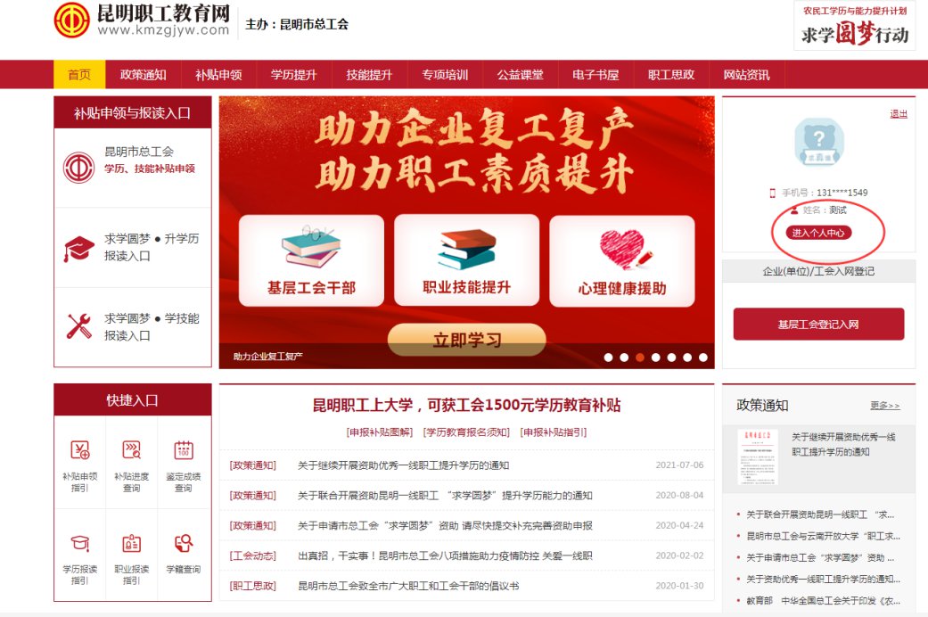 第二步:登錄后進(jìn)入個(gè)人中心。