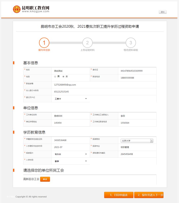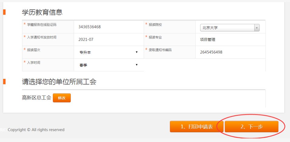 需要填寫(xiě)的內(nèi)容:1、基本信息,2、單位信息,3、學(xué)歷信息;注意:再次確認(rèn)單位工會(huì)所屬的區(qū)總工會(huì),產(chǎn)業(yè)、直屬單位工會(huì)信息,如有錯(cuò)誤及時(shí)進(jìn)行修改。