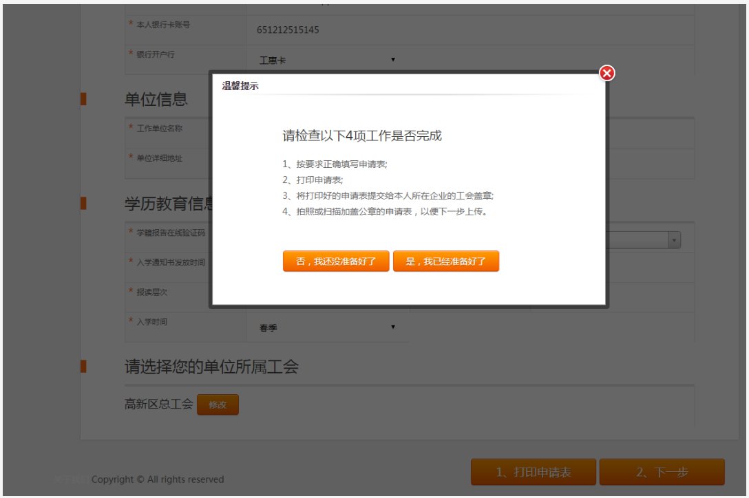 2、攜帶申請(qǐng)表、身份證原件、銀行卡正面、學(xué)信網(wǎng)學(xué)籍驗(yàn)證報(bào)告、入學(xué)通知書(shū)、繳費(fèi)憑證原件(收據(jù)或發(fā)票)到所在單位工會(huì)進(jìn)行審核,由單位工會(huì)負(fù)責(zé)人在申請(qǐng)表上簽名、填寫(xiě)聯(lián)系方式并蓋工會(huì)印章。