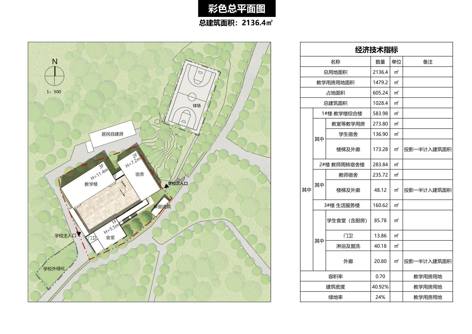 項目簡介:該項目總用地面積2136.4平方米,總建筑面積為1028.4平方米,建筑密度40.92%%,容積率0.70,綠地率24%。
