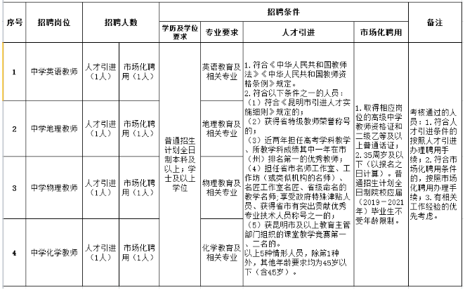 昆明滇池中學(xué)2021年人才引進(jìn)、招聘市場化聘用教師公告