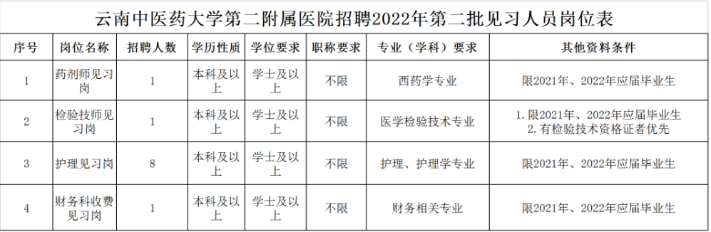 云南中醫(yī)藥大學第二附屬醫(yī)院招聘2022年第二批見習人員通知