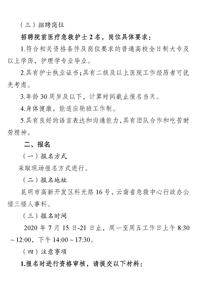 云南省急救中心面向社會公開招聘