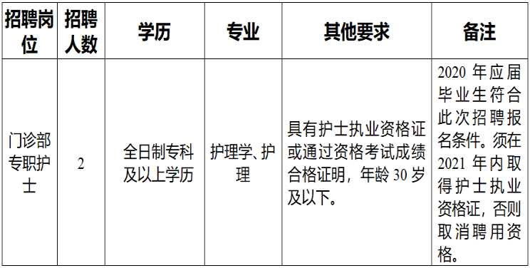 (六) 2020年應(yīng)屆畢業(yè)生符合此次招聘報名條件,如被聘用,須在2021年內(nèi)取得護士執(zhí)業(yè)資格證,否則取消聘用資格。