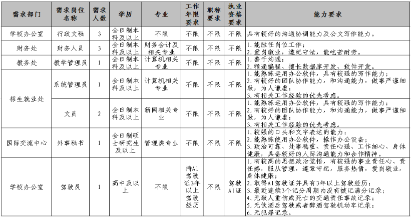 為適應(yīng)學(xué)校發(fā)展的需要,需面向社會誠聘12名工作人員,現(xiàn)將有關(guān)事項(xiàng)公告如下: